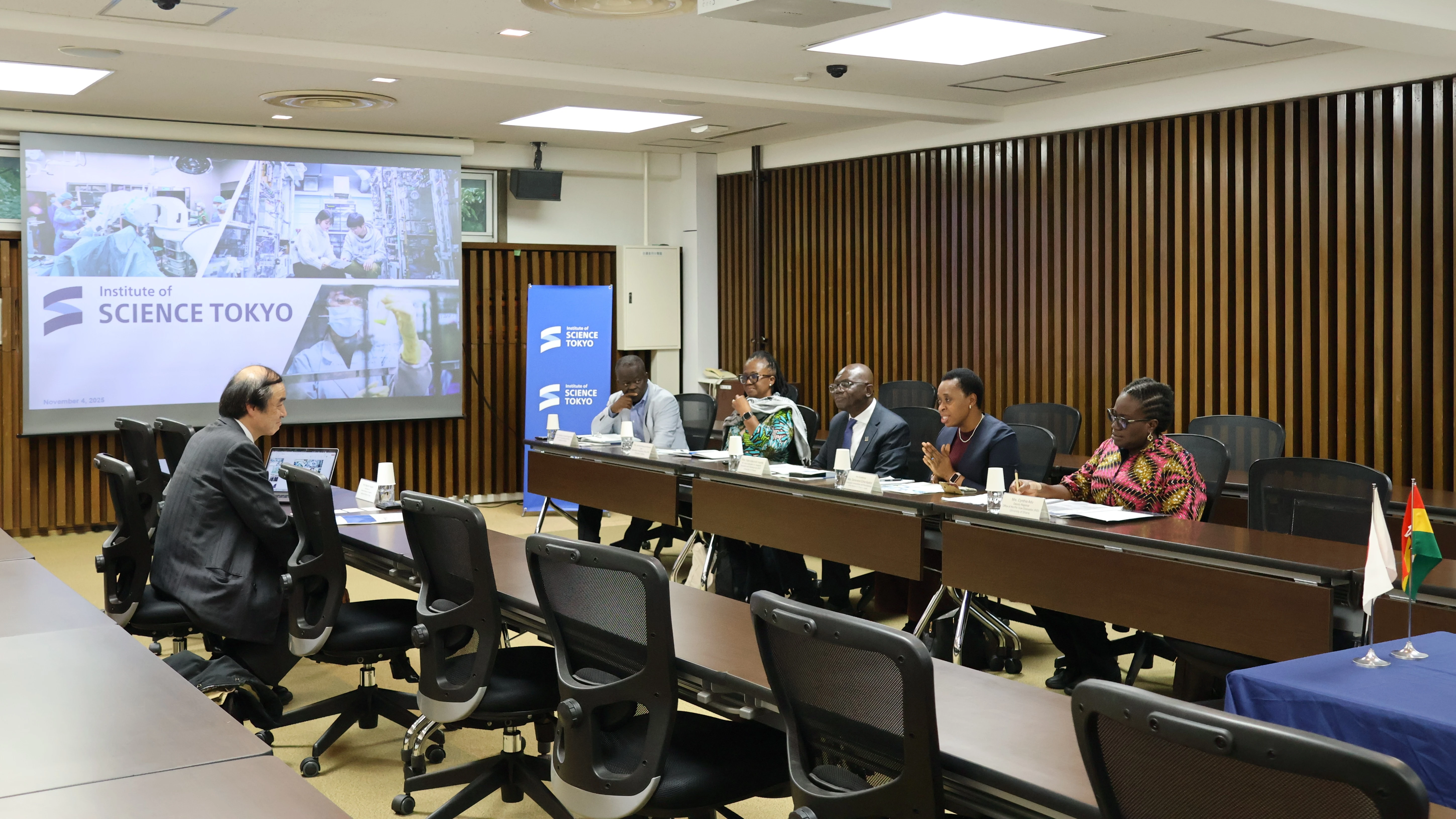 11月4日(火)、駐日ガーナ大使ジェネヴィーヴ・エドゥナ・アパルゥ閣下、ガーナ大学フェリックス・アンコマー・アサンテ研究・イノベーション・開発担当副学長一行が東京科学大学 (Science Tokyo) を訪れ、林宣宏副学長(国際戦略・連携担当)と共に、両大学の紹介や国際交流の現状、今後の交流、研究の可能性について活発な意見交換を行いました。その後、一行は研究室を見学しました。