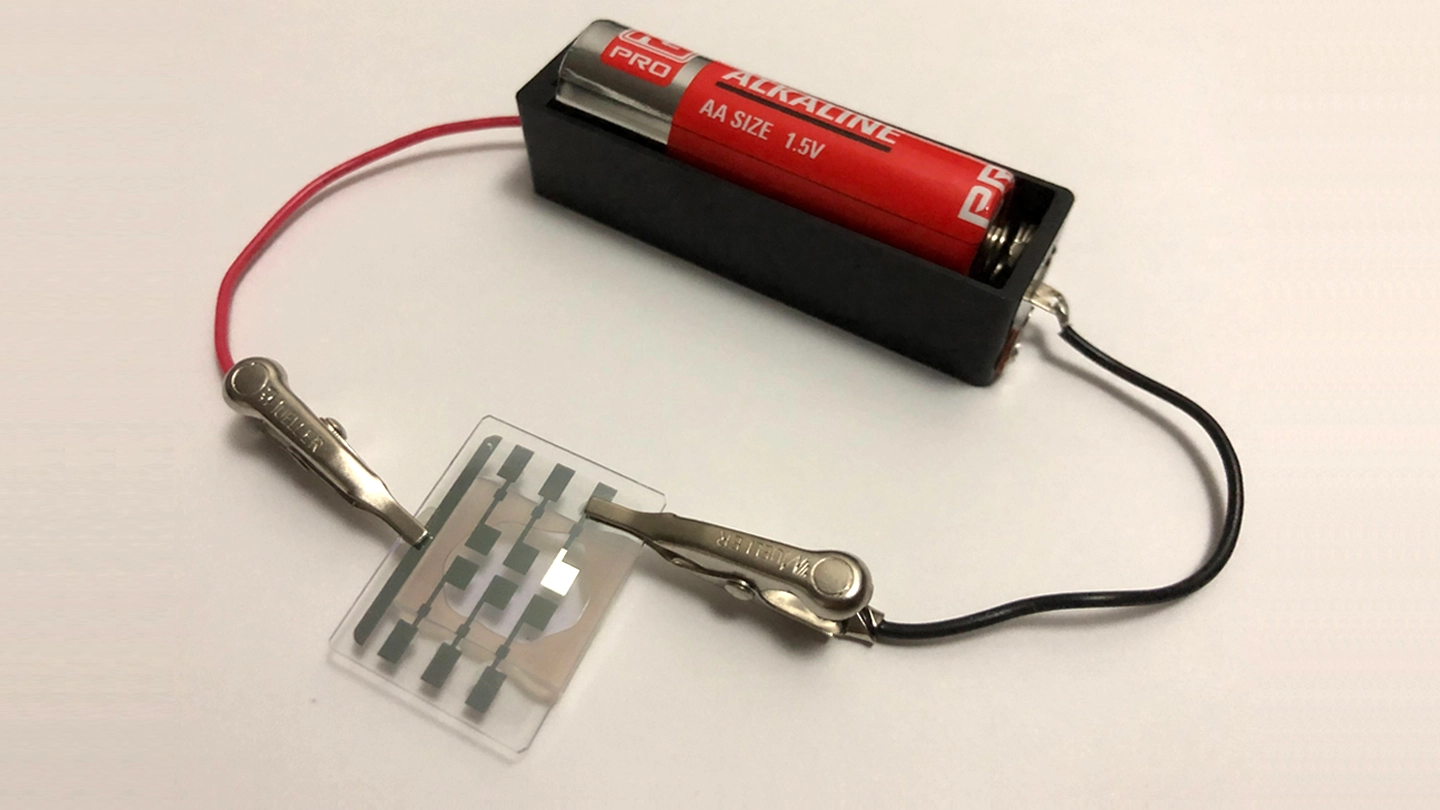 東京科学大学(Science Tokyo) 総合研究院 フロンティア材料研究所の伊澤誠一郎准教授、大阪大学 大学院工学研究科 附属フューチャーイノベーションセンターの相澤直矢助教(テクノアリーナ准教授)らの研究チームは、乾電池(1.5 V)1本をつなぐだけで光る、世界最小電圧で発光する白色有機EL[用語1]の開発に成功しました。