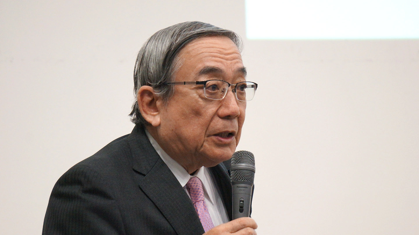 基調講演では、三島良直名誉教授(東京工業大学元学長、日本医療研究開発機構(AMED)前理事長)に「医工連携に不可欠な実質的グローバル体験を通した人材育成」と題して、医工連携を軸とした新産業創出の鍵についてお話しいただきました。三島名誉教授は、ご自身がマサチューセッツ工科大学やハーバード大学の研究現場から得た知見、スタートアップ・VC・大学・企業が連携する米国のエコシステムを紹介しました。また、国際共同研究を推進し、挑戦的研究を可能にする環境を整備することが、医療・エネルギー分野双方のイノベーションに不可欠であると強調しました。