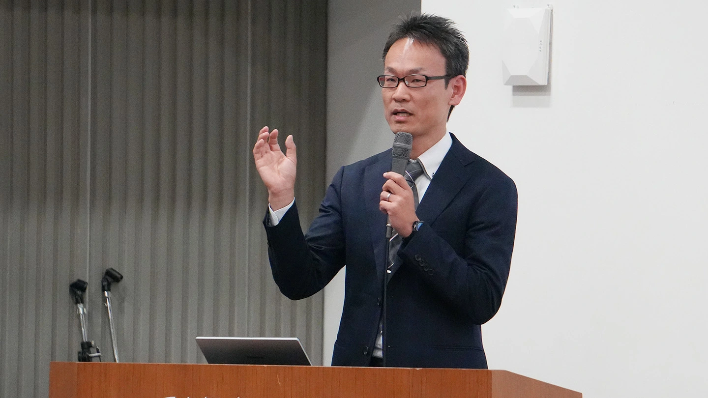 笹野哲郎教授(大学院医歯学総合研究科 循環制御内科学分野)が、「医工連携で心臓を診る」と題して講演しました。笹野教授は、心房細動の増加と心原性脳塞栓症の深刻さを踏まえ、医工連携による新しい診断技術の可能性について説明しました。また、AI解析による12誘導心電図の高度化、スマートデバイスの活用、磁気センサを用いた心磁図など、生体データの多様な取得技術が診療の高度化に寄与すること、病院と研究者が同一空間で協働する「国際医工共創研究院」の取り組みによる、臨床ニーズを起点とした技術開発の重要性を強調しました。