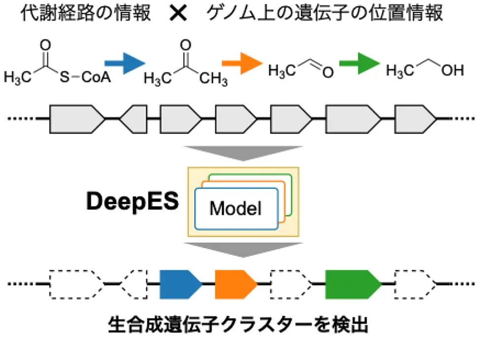 そこで本研究では、生合成遺伝子クラスター[用語2]に注目してオーファン酵素遺伝子を探索するための深層学習ベースの計算手法であるDeepES※を開発しました。