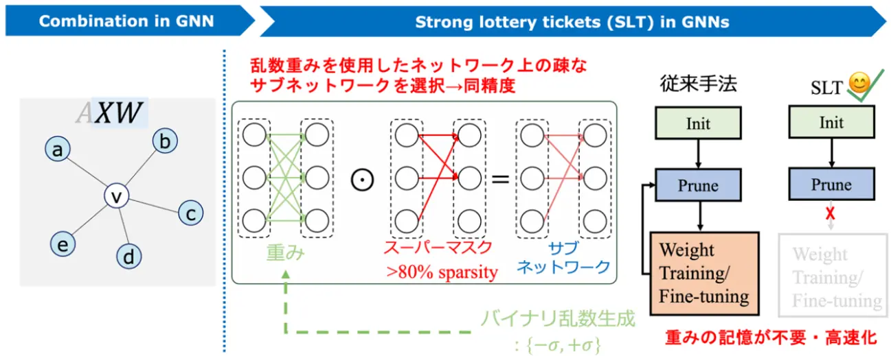 重みが不要で高速処理を可能にする「Strong Lottery Ticket(SLT)理論」の応用