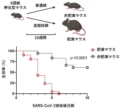 - 肥満マウスはSARS-CoV-2感染すると早期に死亡するが、抗リウマチ薬「イグラチモド」の治療により、生存率が有意に改善することを発見した