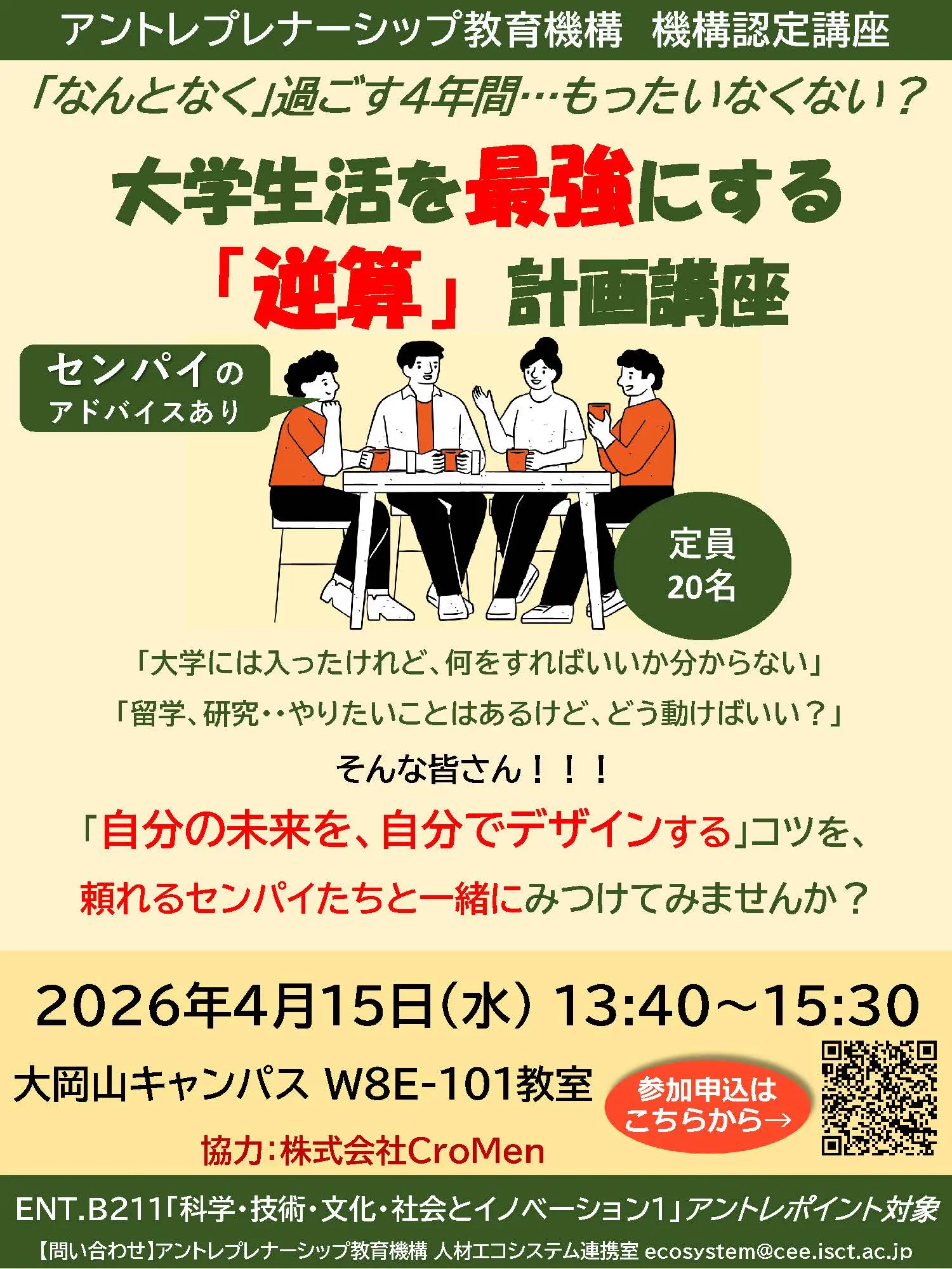 (2024年度以降入学の方は、この講座に参加することで「アントレポイント」を獲得でき、14ポイントをためることでENT.B211科目の単位を取得できます。)