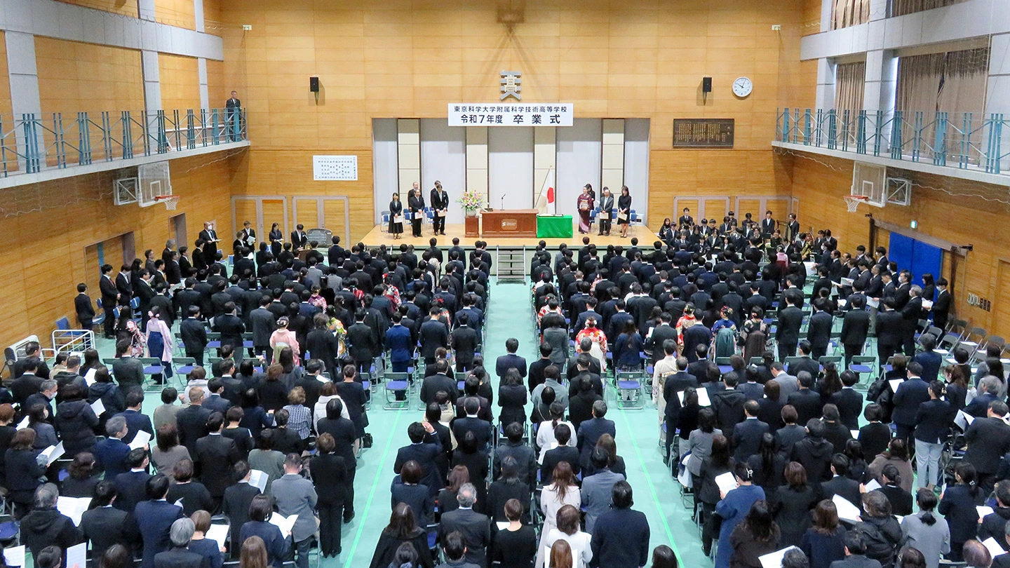 東京科学大学附属科学技術高等学校(Science Tokyo High School)は3月10日、田町キャンパスの附属高校体育館にて、2025年度卒業式を執り行いました。式典には、卒業生とその保護者、および附属高校の梶原将校長をはじめ附属高校教職員、東京科学大学(Science Tokyo)の学長および理事、来賓が出席しました。