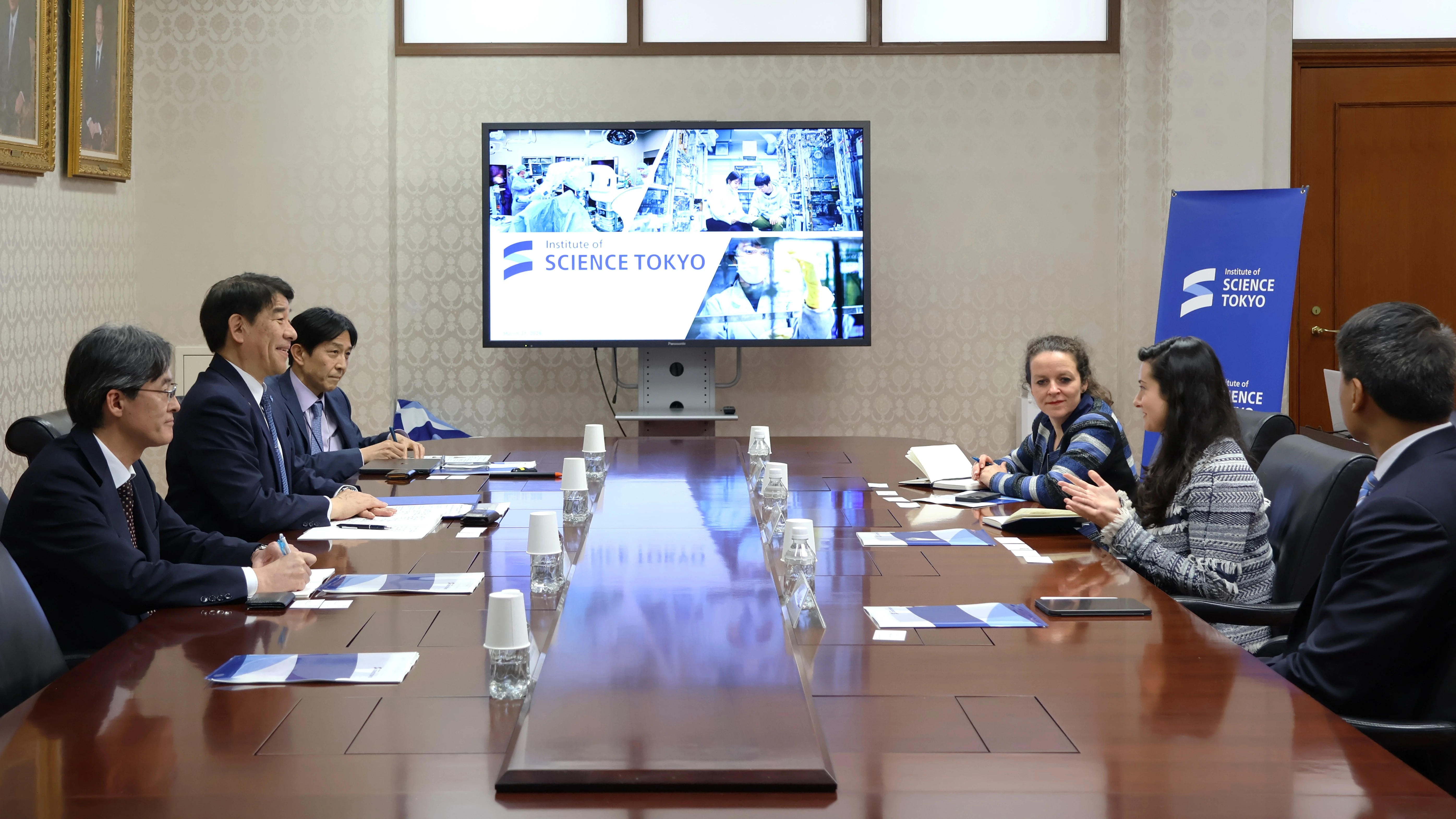 3月31日、世界経済フォーラム(WEF)の知識コミュニティ統括責任者マルティナ・サボ氏一行が東京科学大学(Science Tokyo)を訪れ、大竹尚登理事長、井村順一理事(総合戦略担当)、森尾友宏理事・副学長(国際担当)、髙田潤一執行役副学長(国際担当)とともに、両組織の紹介や取り組みについて懇談し、今後の連携の可能性について活発な意見交換を行いました。