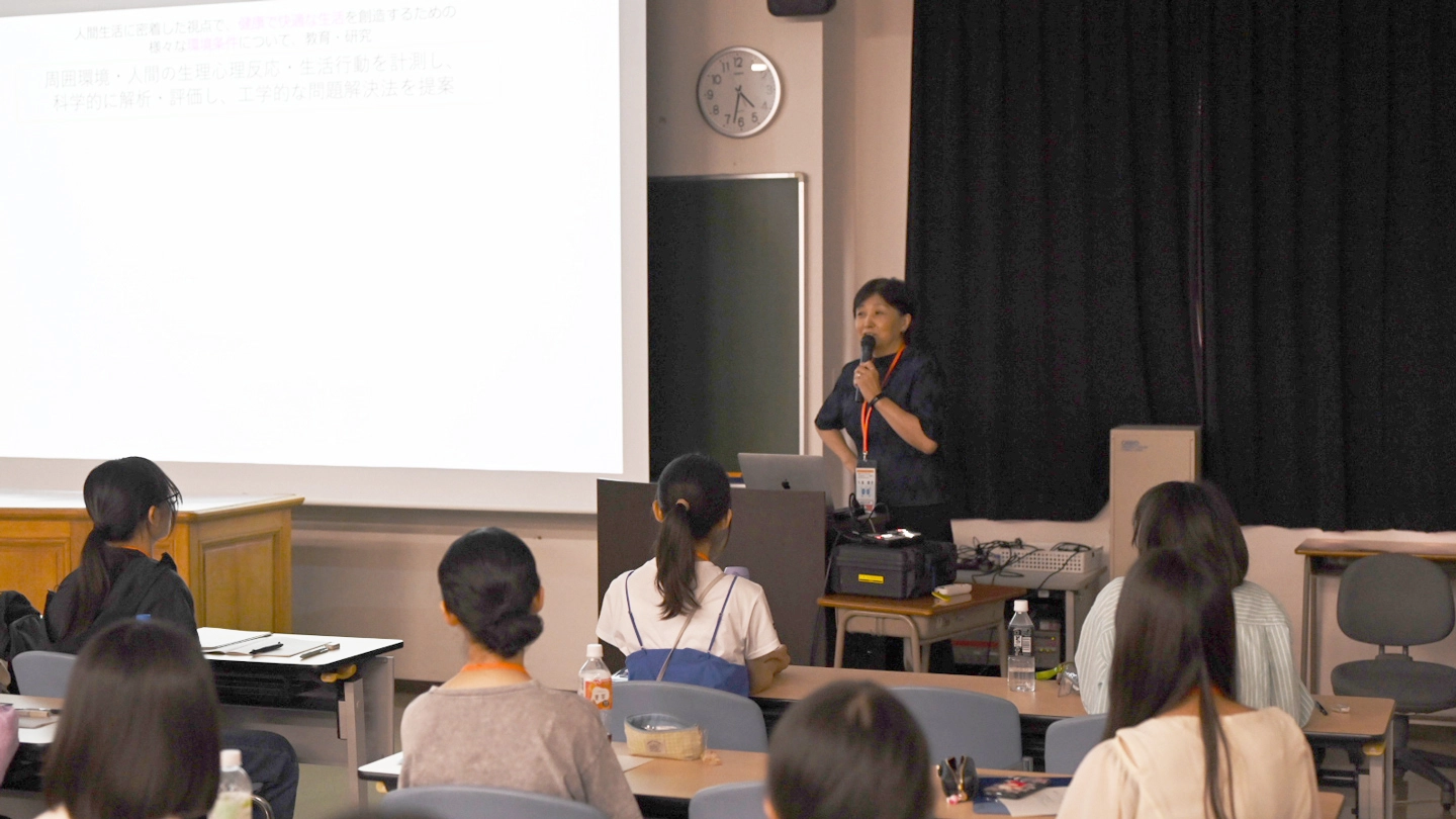 その後、3日間の合宿形式で、さまざまな講演、講義、実験、実習、グループワークのプログラムが実施されました。先進理工学講義では、受講する女子生徒が将来学んでいくであろう最先端の理工学分野について、気鋭の先生2人がわかりやすく解説しました。キャリアパス講義・座談会では、女性研究者・技術者の先達である2人の先生から、自身のキャリアを積んでいくプロセスで考えたことについてのお話があり、受講生にとって示唆に富んだ多くの情報が得られました。実験・実習授業では、2日目の午前と午後に1つずつ、6つのテーマから希望するテーマの実験・実習を受講し、高校までには経験できない理工学分野の実験・実習を体験しました。最終日の社会課題解決ワーク・アイデアコンテストでは、16グループに分かれてグループワークを行いました。「食品ロスについて考える」をテーマとして、社会課題を分析しながら解決方法とビジネスモデルを検討し、優秀との講評を受けたチームがプレゼン発表を行いました。