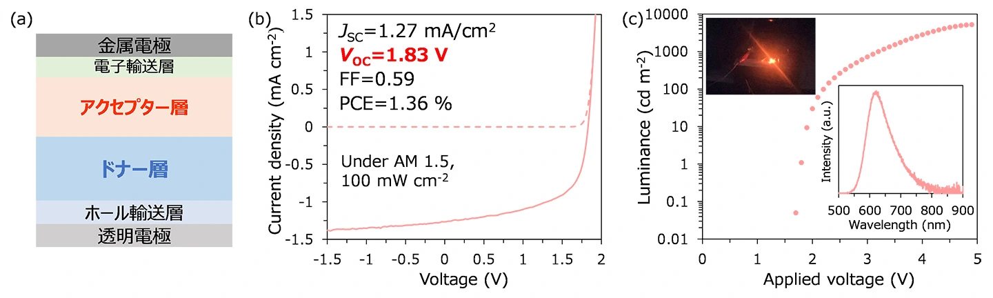 - 良好な発電性能と高輝度な赤色の発光機能を同一素子内で実現
